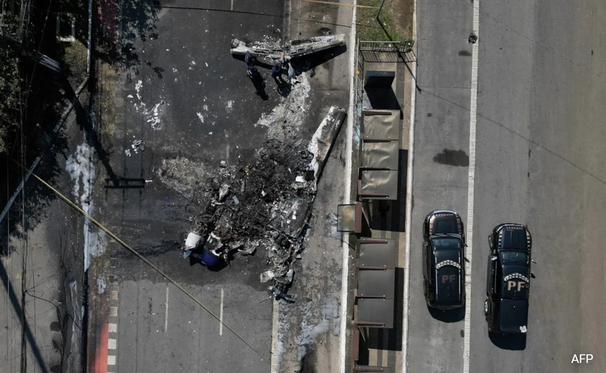 It then hit a bus and exploded, firefighter chief Ronaldo Melo told journalists.