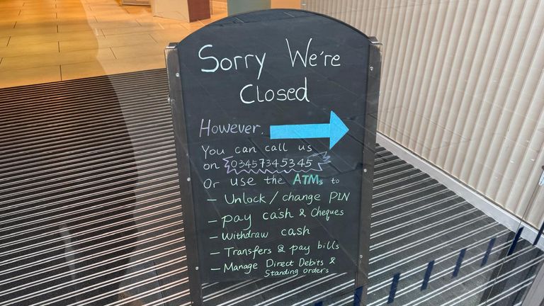 Image: A sign at a Barclays branch in Swindon explaining it’s closed