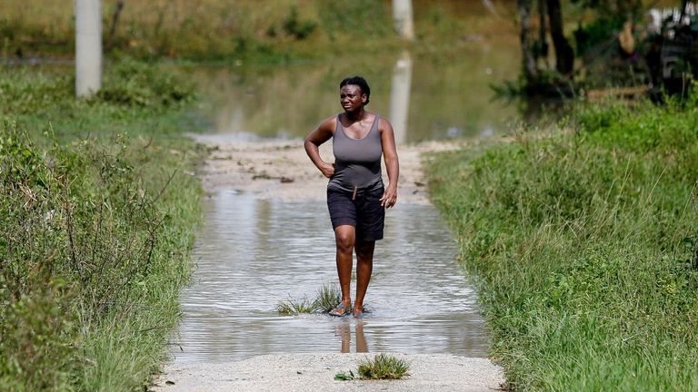 A woman walks after Hurricane Melissa made landfall, in Santa Cruz, Jamaica. Pic: Reuters