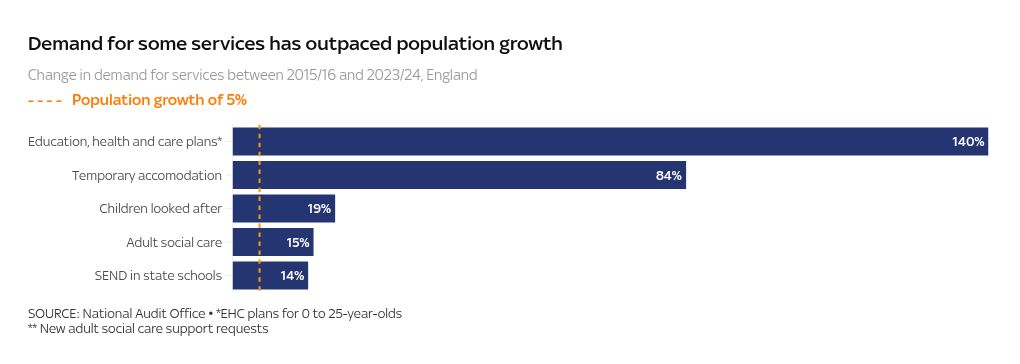 The rapid increase in costs of temporary accommodation, for example, has been driven by the large increases in people facing homelessness because of inflationary pressures and housing shortages.