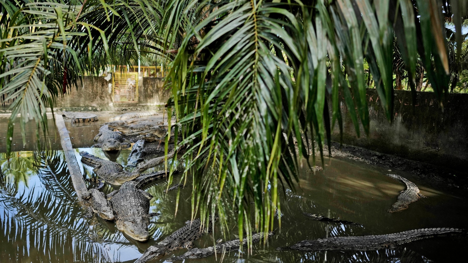 The farm has four ponds and around 50 reptiles. Some have names: Tanker, the largest, shaped like a ship, or Karossa, named after the sub-district the animal was caught after fatally attacking someone.