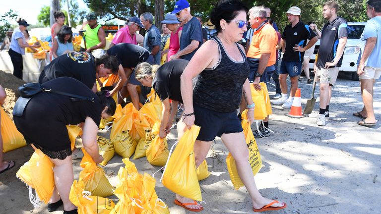 The federal government says it is providing the Queensland government with 250,000 sandbags in addition to 80,000 the military has already delivered, and some residents have been seen stacking them to protect low-lying properties.