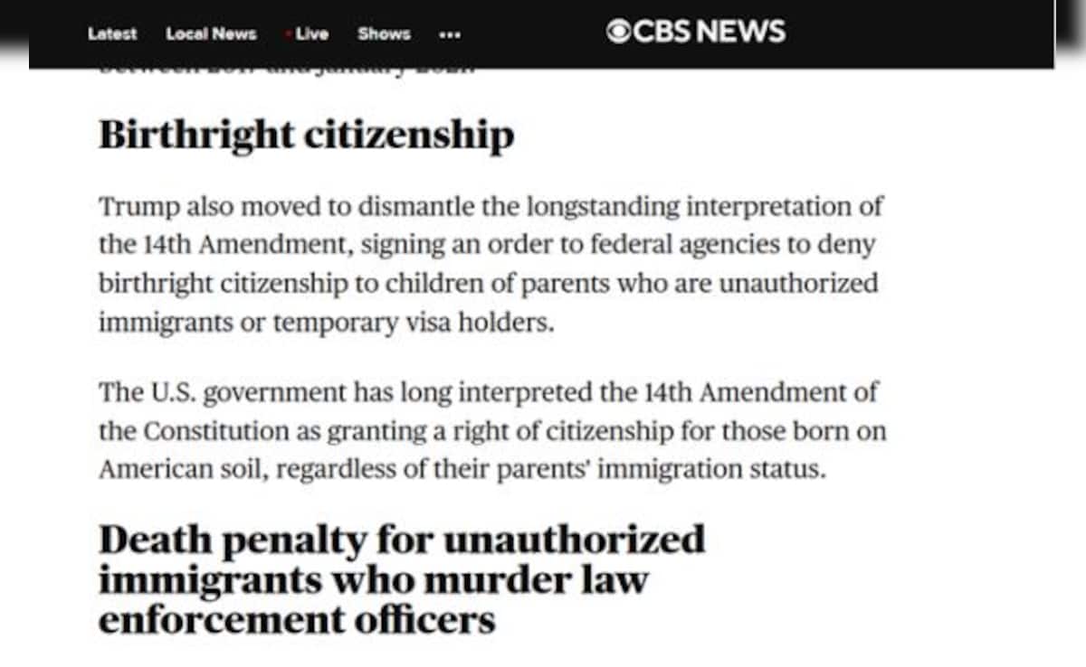 Trump signed an executive order curbing multiple immigration laws, including birthright citizenship that provides automatic American citizenship to anyone born in the country, which stands contrary to the 14th amendment of the US Constitution. The executive order signed by Trump states that a child born in the country will only be granted US citizenship if at least one parent is a US citizen, a green card holder or a member of the US military.