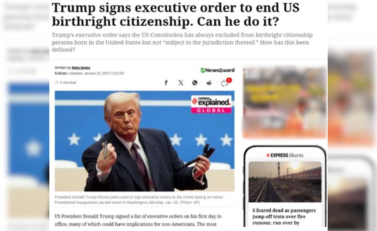Another report by The Indian Express dated January 22, whose headline read: “Trump signs executive order to end US birthright citizenship. Can he do it?” This report discussed the number of immigrants and children who could be impacted by the order.