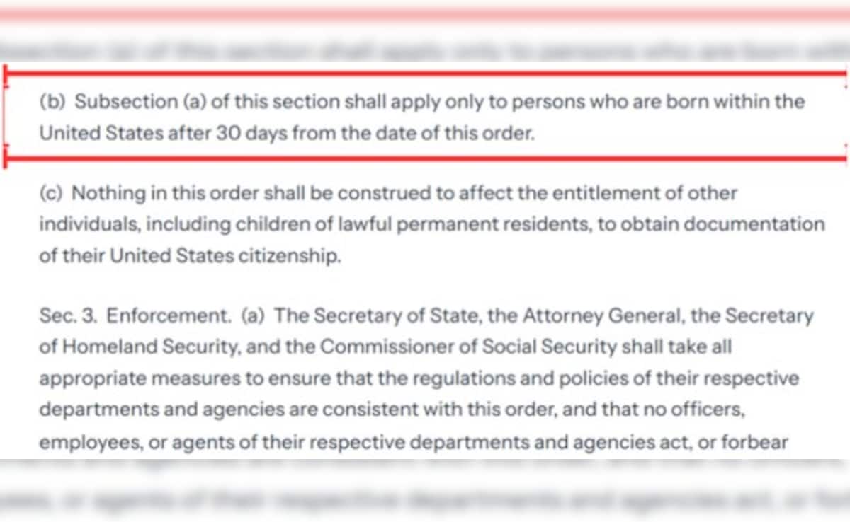 The document also mentioned: “Subsection (a) of this section shall apply only to persons who are born within the United States after 30 days from the date of this order.”