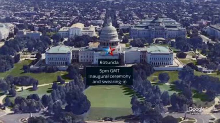 The Capital One Arena in Washington will host a live viewing of the ceremony – due to start at 5pm UK time – as well as the Presidential Parade.