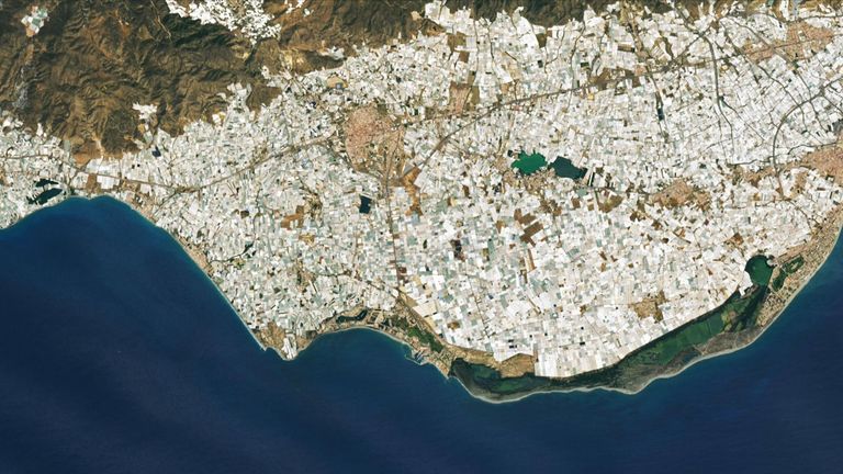 Almeria's 'Sea of Greenhouses' are visible from space. Pic: NASA