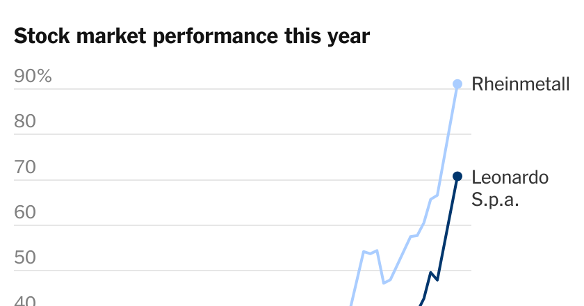 Shares in Europe’s defense giants — including the British defense contractor BAE Systems, the German arms manufacturer Rheinmetall and the Italian aerospace and defense specialist Leonardo — hit record highs on Monday. The sector’s surge has helped pushed the Stoxx Europe 600, a benchmark once dominated by luxury stocks, to new heights as well.