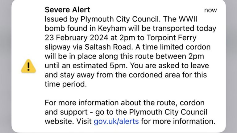 An alert was issued by Plymouth City Council to warn local residents to avoid a certain route that was being used to convoy an unexploded Second World War bomb through the city to the sea.