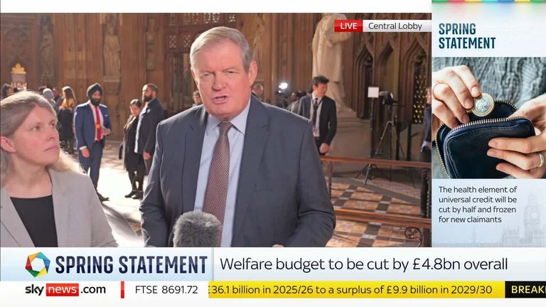 The chancellor earlier confirmed she would have to implement more welfare savings than she had initially planned after the Office for Budget Responsibility (OBR) said reforms announced last week would save £3.4bn instead of the £5bn ministers thought.