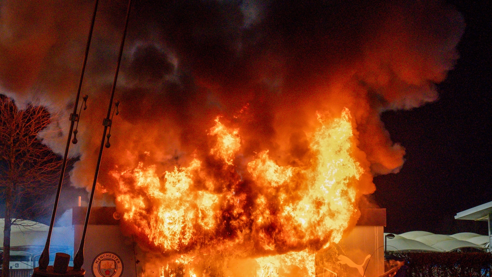 Videos shared online showed large flames and smoke coming from the stand, selling club merchandise, located near the players’ entrance at the Etihad Stadium.