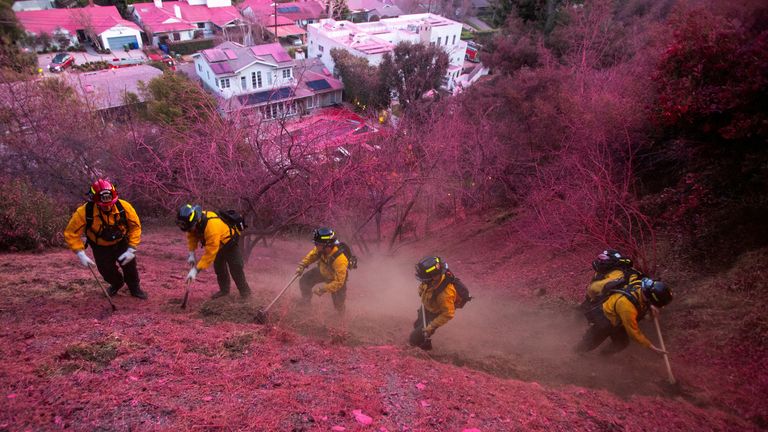 The early sparks were fanned into infernos by the now infamous Santa Ana winds – hot, dry winds most common in winter, which reached 99mph. Scientists do not yet understand if climate change disrupts these parching winds.
