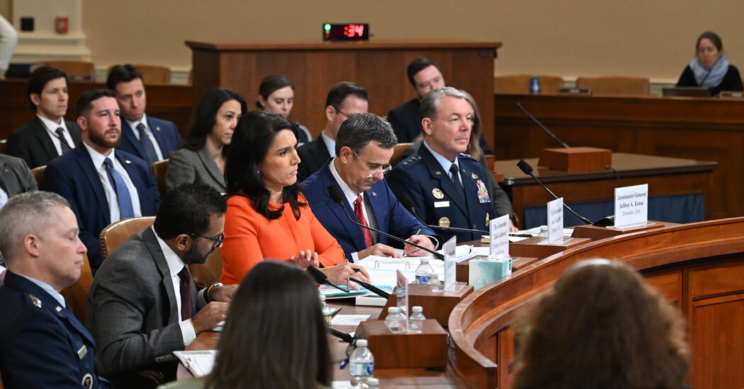 “The threat is in the House, the threat is across the dais,” Ms. Houlahan said, pointing to Ms. Gabbard, John Ratcliffe, who is the director of the C.I.A., and the other intelligence officials who appeared at the hearing. “I need to ask these questions. It’s my job to ask these questions of you.”
