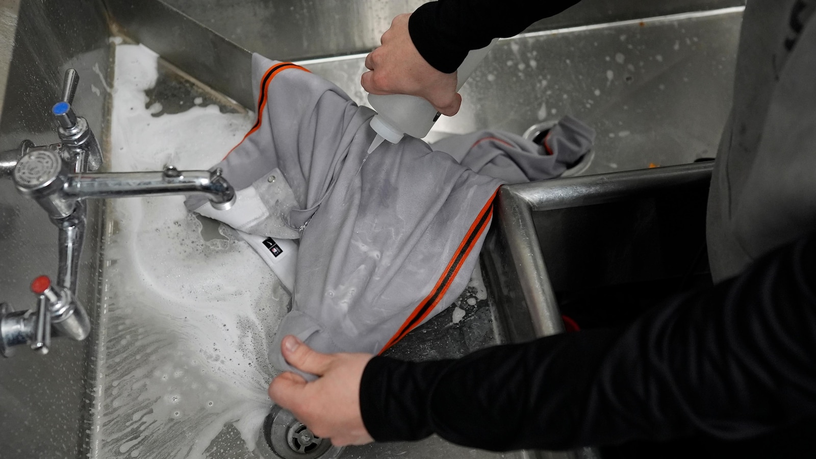 TIP: Halpin says washing uniforms is “a trial-and-error process” much of the time. “Obviously when it comes to the at-home kind of washing, you don’t have these top-of-the-line chemicals that professional teams have,” he says. “So I would say just do a little bit of research. … Find out what the top kind of brands people are using at the Walmarts and stuff like that. And go with it.”