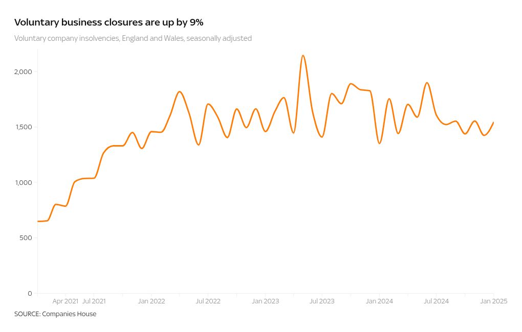 Since the budget, voluntary liquidations have remained consistently high and from December 2024 to January 2025 voluntary business closures have gone up by 9%.
