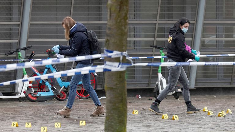 CCTV footage showed two people walking into the station and opening fire, Reuters news agency reported. It added it could not immediately verify the images.
