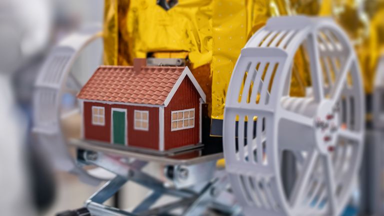 Besides science and tech experiments, the lander was also carrying a tiny, Swedish-style red cottage with white trim and a green door.