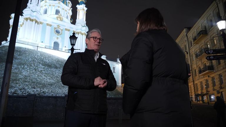 Sky cameras filmed Sir Keir laying a wreath with Ukrainian President Volodymyr Zelenskyy, after a Russian drone was shot down over the presidential palace while they held meetings.