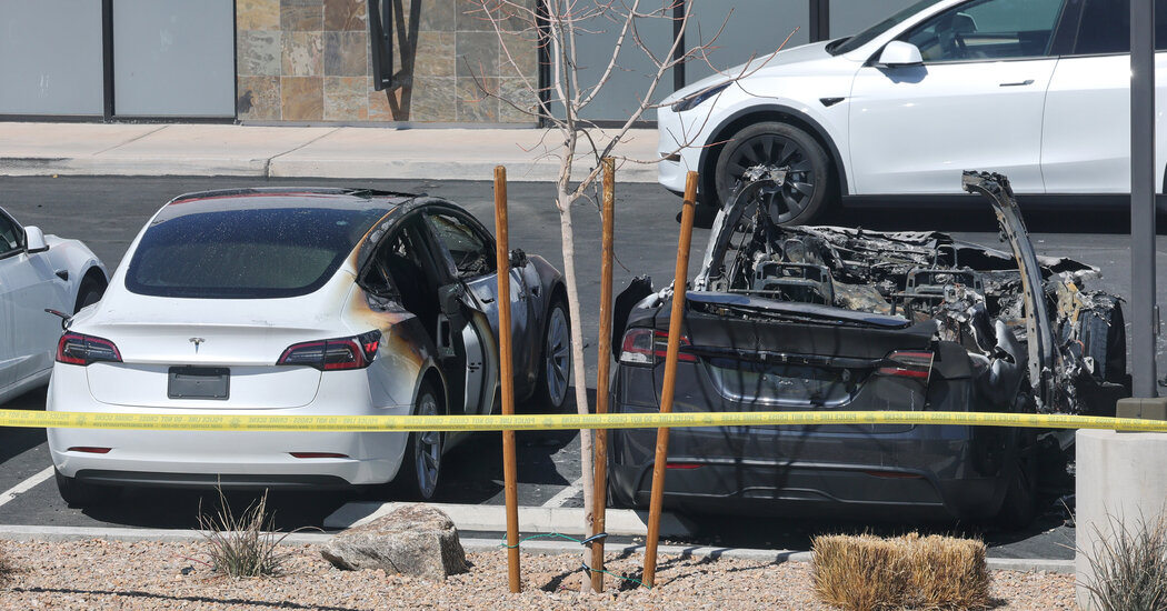 Five more vehicles at a Tesla facility in Las Vegas were damaged on Tuesday in what the local authorities said was a targeted attack.
