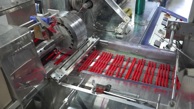 Cardboard boxes emblazoned with “made in USA” are stacked around the factory. It is just one of a handful of factories remaining in the US manufacturing plastic straws after much of the industry moved abroad to China.