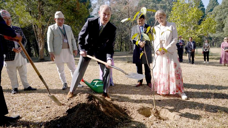 Prince Edward and his wife Sophie toured the Godawari National Botanic Garden on the outskirts of Kathmandu on the second day of their official royal tour of the Himalayan nation.