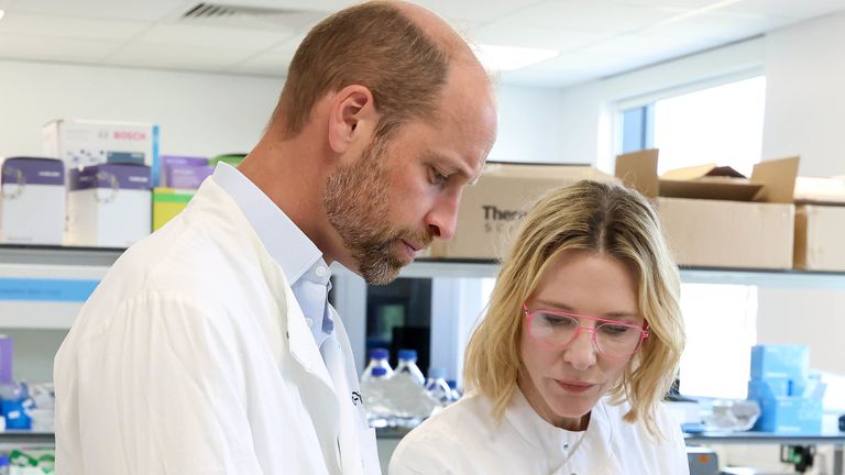 Image: Prince William joined actor Cate Blanchett during a visit to Earthshot Prize finalist Colorifix earlier this year. Pic: Andrew Parsons / Kensington Palace