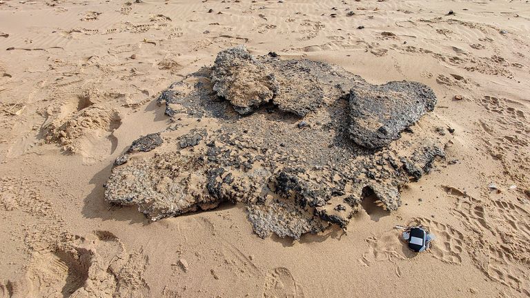 But we also found clumps of blackened pellets that had melted together in the heat.