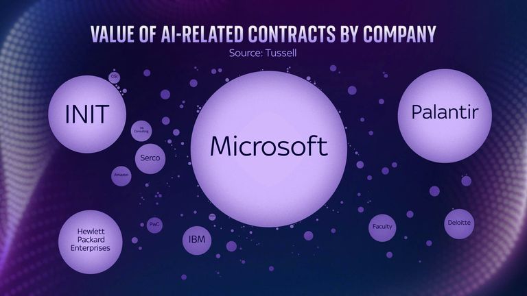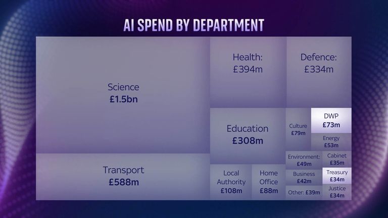Sky News also looked at which departments have the biggest spending on AI. They are science and technology, which has the Met Office contract, and transport with the Init deal.