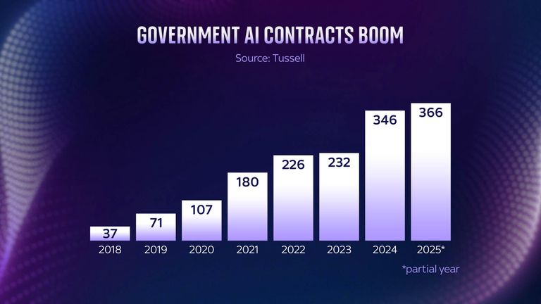 Over £3.35bn is the overall spend by government departments on AI contracts, infrastructure and services, since the technology really since on the scene in about 2018. The number of contracts has been going up each year.