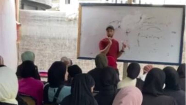 In May last year, Mr Abu Riziq set up his own tent school using the leftover parachute from an aid drop. He has since expanded to five schools, providing education and psychological support to around 2,000 children aged five to 14.