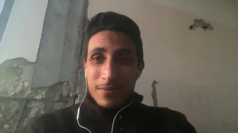 Ahmed Abu Riziq lives with his wife and three young children in a rented flat in the north of Gaza City. He speaks to us from the building’s roof, which is littered with debris and shrapnel damage.
