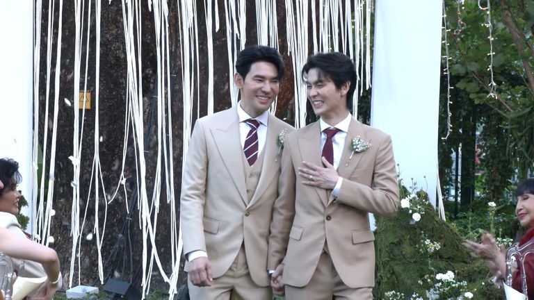 A mass LGBTQ wedding at a shopping mall in Bangkok saw hundreds of marriage registrations as the law came into effect. It marked the culmination of years of campaigning and thwarted attempts to pass equal marriage laws.