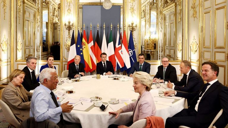 Sir Keir Starmer was the first leader to arrive at this meeting in Paris, strolling down the road from the British Embassy.