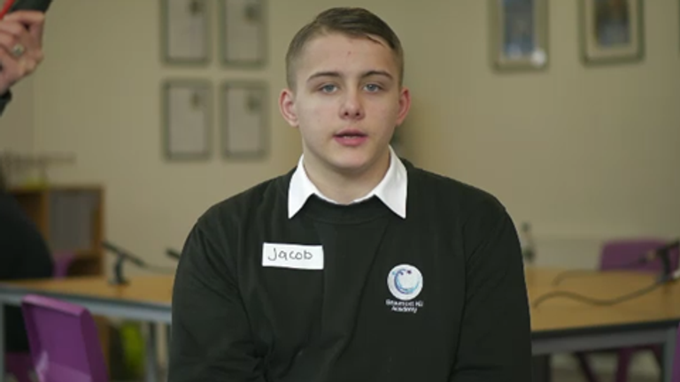 Sky News was invited to film a focus group of under-16s from different schools discussing the results at St Aidan’s Academy in Darlington, hosted by Labour MP Lola McEvoy, whose office carried out the research.