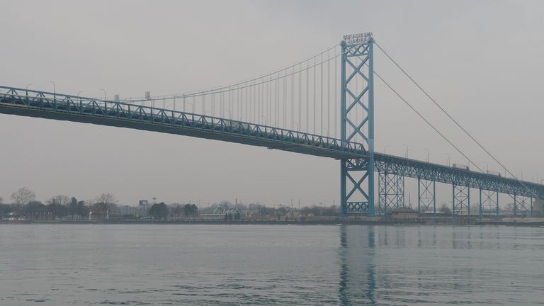 Canada‘s auto capital and America‘s motor city are divided by the Detroit River, tied by the Ambassador’s Bridge which transports $323m (£260m) worth of goods between Canada and the US every day.