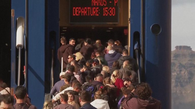 Images captured an exodus of residents and seasonal workers leaving the Cycladic Islands amid the earthquakes.