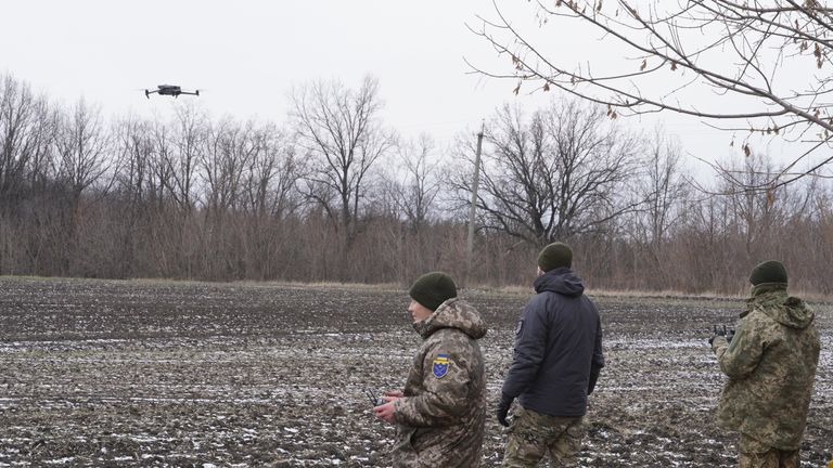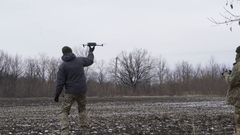 “I’ve always been fascinated by drones,” Valery said, speaking as he handled a control panel, buzzing a rotary aircraft around a frozen field in northeastern Ukraine.