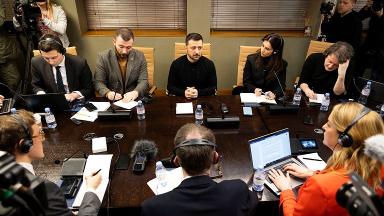 The Ukrainian president’s 90-minute sit down with the media came shortly after he wrapped up a tough week with a visit to see the King at Sandringham.