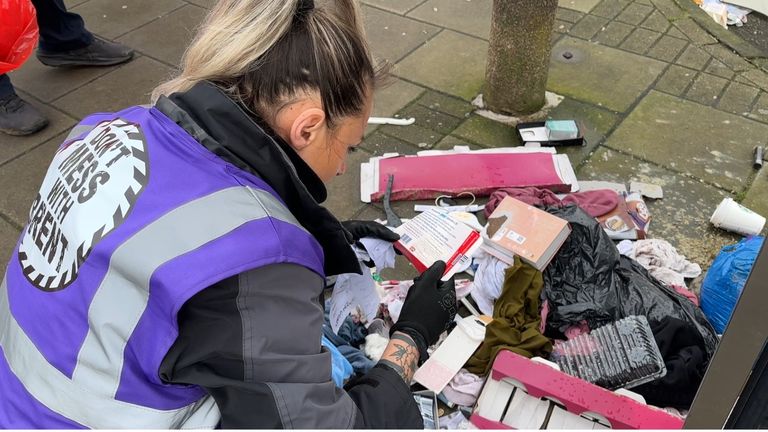 “We’re little detectives,” she says, having donned two layers of gloves and attacked a pile of black bin bags with gusto.